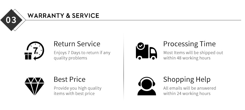 (2) If you have any problem with our items or services, Pls contact us firstly before leaving negative feedback for us.We will solve your problem and provide you with the best customers services.