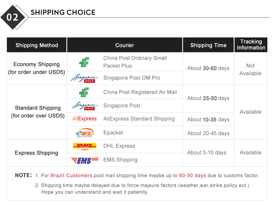 (2) When you receive our parcel,if you are not satisfied with our products, please feel free to contact us on Aliexpress first(Please do not open dispute first),we will solve your problem untill you feel satisfied. If we can not solve your problem or you are not satisfied,then you can open dispute.Thanks for you understanding.